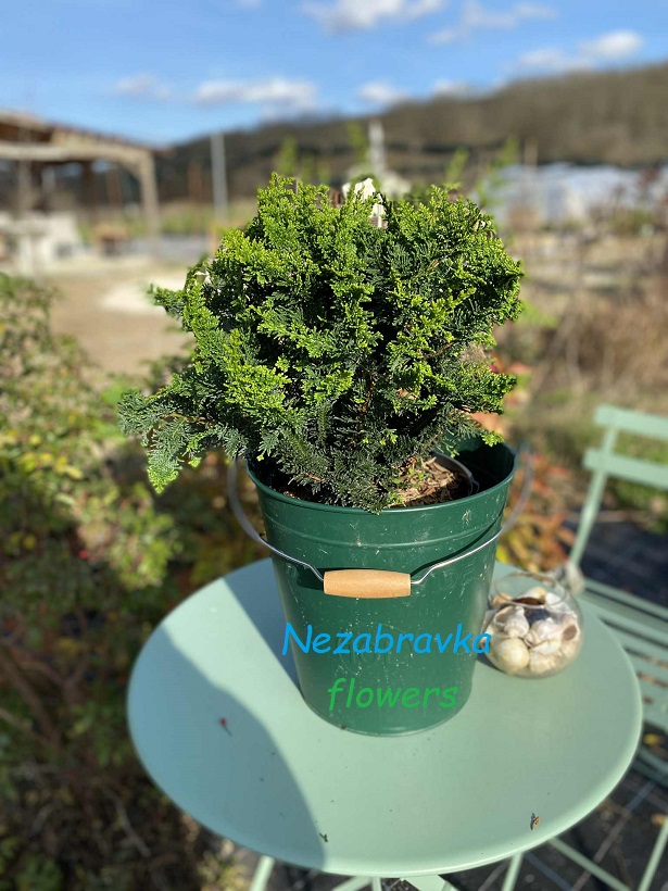 Още един малък и прекрасен Хиноки кипарис със спрей от нежни папратовидни игли,Наистина , лесно можеш да сбъркаш коронката му с туфа папрат.В по-зряла възраст клоните заемат по-радиални позиции и формата става по-ветрилообразна.Особено ни хареса при този сорт контраста между по-старите петролнозелени иглички и младите в ярък изумруден цвят.Името му,в превод Плюшено мече,навярно е повлияно от желанието да докоснеш и помилваш това симпатично кипарисче. Интересно растение,което заслужава вниманието на колекционерите на интересни иглолистни ,както и на дизайнерите,които обичат да рисуват с различни форми и текстури в градината.