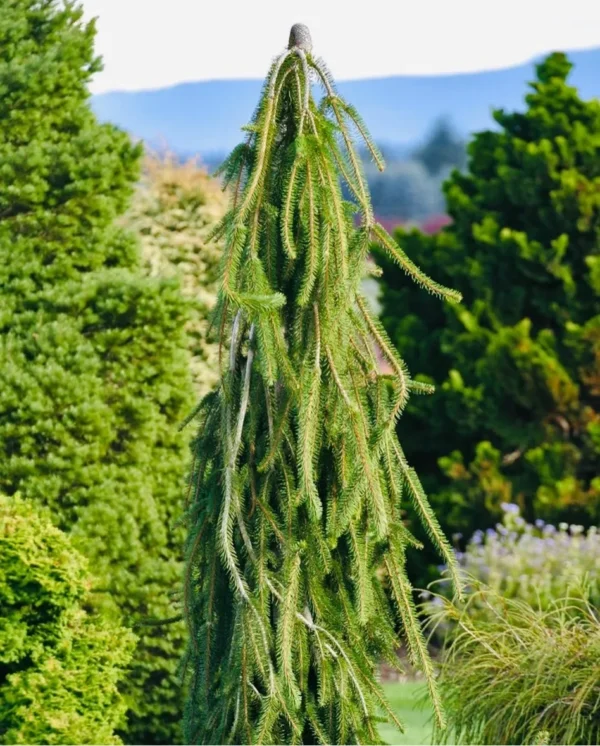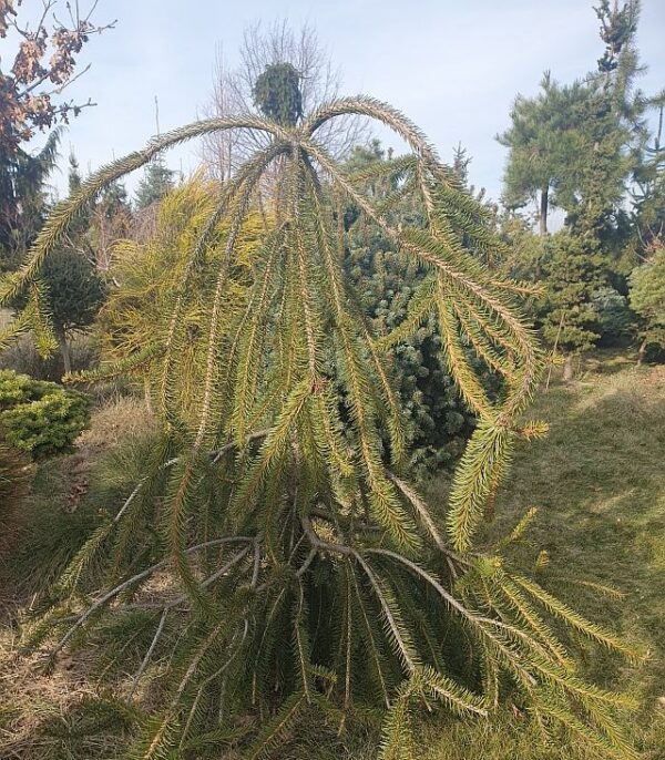 Произход-Iseli Nursery ,кръстоска между P.a. ‘Pendula и Picea abies ‘Virgata’.