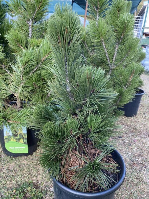 Indigo Eyes е много търсен от колекционерите и рядко предлаган бор, малък представител на величествената черна мура,,-той е джудже със спретната , пирамидална ,гъста корона с твърди тъмнозелени игли в снопче по две.Удивителното при него,както загатва и името му Индигови очи са шишарките-те го украсяват още от млада възраст по всяко клонче ,в началото ярко сини,за да потъмнеят до мастилено,почти черно.Покафеняването им става чак наесен . Лесен за гледане бор ,здрав и устойчив на студ,на жега и на суша .Може да се впише добре във всяка една композиция с иглолистни ,а може да се засади като солитер и дори да се използва за коледно дърво на двора.Въпреки името кората на черната мура е светла,почти бяла.При младите дървета тя е гладка,а при старите са напуква на плочки,поради което в Германия наричат дървото Брониран бор.Мурите са дълговечни дървета,при нас черна мура расте естествено само в планините Пирин и Славянка,а най-старият представител е Байкушевата мура,която е на 1300 г.