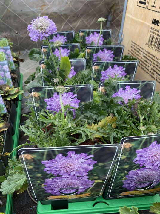 - Scabiosa columbaria “Mariposa Blue“ големи нежносини кошнички.